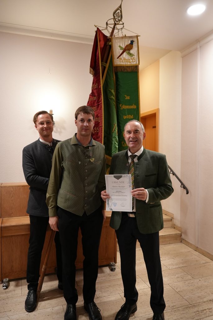 Der Jagdverband Straubing Stadt und Land konnte sein 70-jähriges Jubiläum vergangenen Sonntag mit einem umfangreichen Programm feiern. Los ging es mit einer Vorführung von Jagdhunderassen und einem Konzert der Jagdhornbläser der Kreisgruppe am Straubinger Stadtplatz, das auch aufgrund des verkaufsoffenen Sonntags natürlich viele Passanten zu hören bekamen. Gemäß dem Motto „Danken ist ein wichtiger Baustein im Leben“ wurde um 15 Uhr ein Gottesdienst in der neu erstrahlenden Veits-Kirche begangen. Die Jagdhornbläser unter der Leitung von Hornmeisterin Maria Werth übernahmen die musikalische Gestaltung mit der Hubertusmesse. Zelebrant war Pfarrer Kilian Limbrunner. Sowohl die Predigt als auch die Fürbitten waren geprägt von Gedanken einer waidmännischen Hege und Pflege. Eindrucksvoll wurde unter der Leitung des Vorsitzenden Markus Landsmann der Verstorbenen der letzten zehn Jahre gedacht. Im voll besetzten Saal im Gäubodenhof begrüßte Landsmann anschließend Ehrengäste, zahlreiche Mitglieder und Funktionäre, unter anderem war auch CSU-Landwirtschaftsminister Alois Rainer zugegen, der auf Bundesebene ebenfalls für die Jagd zuständig ist. Allein anhand der Begrüßung konnte man schon ahnen, welchen Zeitrahmen die Ansprachen einnehmen würden. Einem Zwischenruf mit einem Zitat, das Alt-OB Reinhold Perlak zugesprochen wird („Bei mehr als fünf Begrüßungsreden ist es erlaubt, ab dem fünften Redner leicht zu schießen“) war es wohl zu verdanken, dass nur kurze Reden gehalten wurden. Vorsitzender Markus Landsmann etwa stellte immer wieder das Bild der Jägerschaft in seinen Fokus, nachdenklich, selbstkritisch, aber auch dankbar für das Erreichte. Es gebe keine artgerechtere Haltung von Tieren als in der freien Natur. Deswegen sei dieses Fleisch das Beste, was die Natur bieten kann. Es werde nur entnommen, was notwendig ist. Einführung differenzierten Wolfsmanagements Landwirtschaftsminister Rainer sprach über eine von vielen Aufgaben in nächster Zeit: die Einführung eines regional differenzierten Wolfsmanagements mit rechtssicheren Regeln zur Entnahme auffälliger Wölfe und gesetzlicher Notstandsregelungen. Er wisse um viele weitere Wünsche, doch es gelte, konzentriert und gezielt zu arbeiten. Aktuell liege die Änderung zum Wolf in den letzten Schritten noch in einem anderen Ministerium, doch es komme zum Abschluss. Zum Schluss dankte er dem Jagdverband für die sensible Balance zwischen Ökologie und Ökonomie. Während vieler Besuche in anderen Bundesländern werde ihm immer wieder vor Augen gehalten, wie resigniert viele Nutztierhalter sind. Deshalb konzentriere er sich jetzt auf die Aufnahme des Wolfes ins Gesetz. Oberbürgermeister Markus Pannermayr konnte seinem Vorredner nur Recht geben. Jeder spreche über jedes Thema, doch meistens nicht miteinander, sondern übereinander. Mehr und mehr konfliktträchtige Arten wie Saatkrähe oder Waschbär nehmen zu. Das sei gerade in den Städten ein wachsendes Problem, das es zu lösen gilt. Er dankte dem Jagdverband und seinen Mitgliedern für die tägliche Arbeit zum Wohle der Natur. Landrat Josef Laumer dankte dem Jagdverband und dem damit verbundenen Ehrenamt im Landschaftspflegeverband, speziell bei einem Rebhuhn-Projekt. Hier könne man sehen, wie wichtig dem Jagdverband die Hege ist. Sowohl MdL Josef Zellmeier als auch MdL Tobias Beck waren voller Lob für den Jagdverband. Generalsekretär Robert Pollner verstand es, in Jägermanier kurz und bündig über so manches aus dem Landesverband zu berichten. Aktuelle Probleme werden von Hubert Aiwanger angepackt. Er dankte mit dem Gruß „Waidmannsheil“. Endlich durfte nun der Schirmherr und Jagdminister in Bayern ans Rednerpult. Hubert Aiwanger ist nicht nur passionierter Jäger, sondern seit dem vergangenen Jahr auch für die Jagd im Freistaat verantwortlich. Aiwanger: Raubwild nicht ausrotten Er zollte den Jägern großen Respekt für ihre Arbeit, die stets nachhaltig und fair gegenüber der Natur sei. Er berichtete von vielen Problemen mit immer mehr eingewanderten Arten und Konflikt-Arten. „Jagd ist die natürlichste Art der Tierhaltung, doch leider fehlt es an Wertschätzung, wenn man die Preise für Wildbret sieht“, sagte er. Raubwild müsse reduziert werden, um Nutzwild zu erhalten. Er stellte aber auch klar, Raubwild dürfe nicht ausgerottet werden. Raubwild ist die Gesundheitspolizei im Wald und somit für eine intakte Natur von Nutzen. Er bat, Bundesminister Rainer, sich dem Thema anzunehmen, was dieser aktuell verneinte. Er wiederholte, das Jagdgesetz werde aktuell nur für den Wolf geöffnet. Dies beruhigte Aiwanger nicht so ganz. Er berichtete, Waldbesitzer seien der Meinung, es müsse am Abschussplan etwas geändert werden, da zu viel Wildverbiss herrsche. Doch dies sei nur mit den Jägern im jeweiligen Jagdrevier zu lösen, denn die Grundbesitzer hätten ja den Jägern ihre Jagd verpachtet und nicht der Staat. Die Waldbesitzer forderte er auf, dem Wald mehr Licht zu geben, um Naturverjüngung zu erlauben. Den Jägern gab er unter anderem mit auf den Weg, sich diesen Diskussionen zu stellen, um gemeinsam mit den Waldbesitzern an Lösungen zu arbeiten. Mit einem Ständchen der Jagdhornbläser gingen die Grußworte zu Ende. In geselliger Runde – mit einem guten Wild-Braten – nahm der Tag seinen weiteren Lauf. Im Anschluss gab es noch zahlreiche Ehrungen.