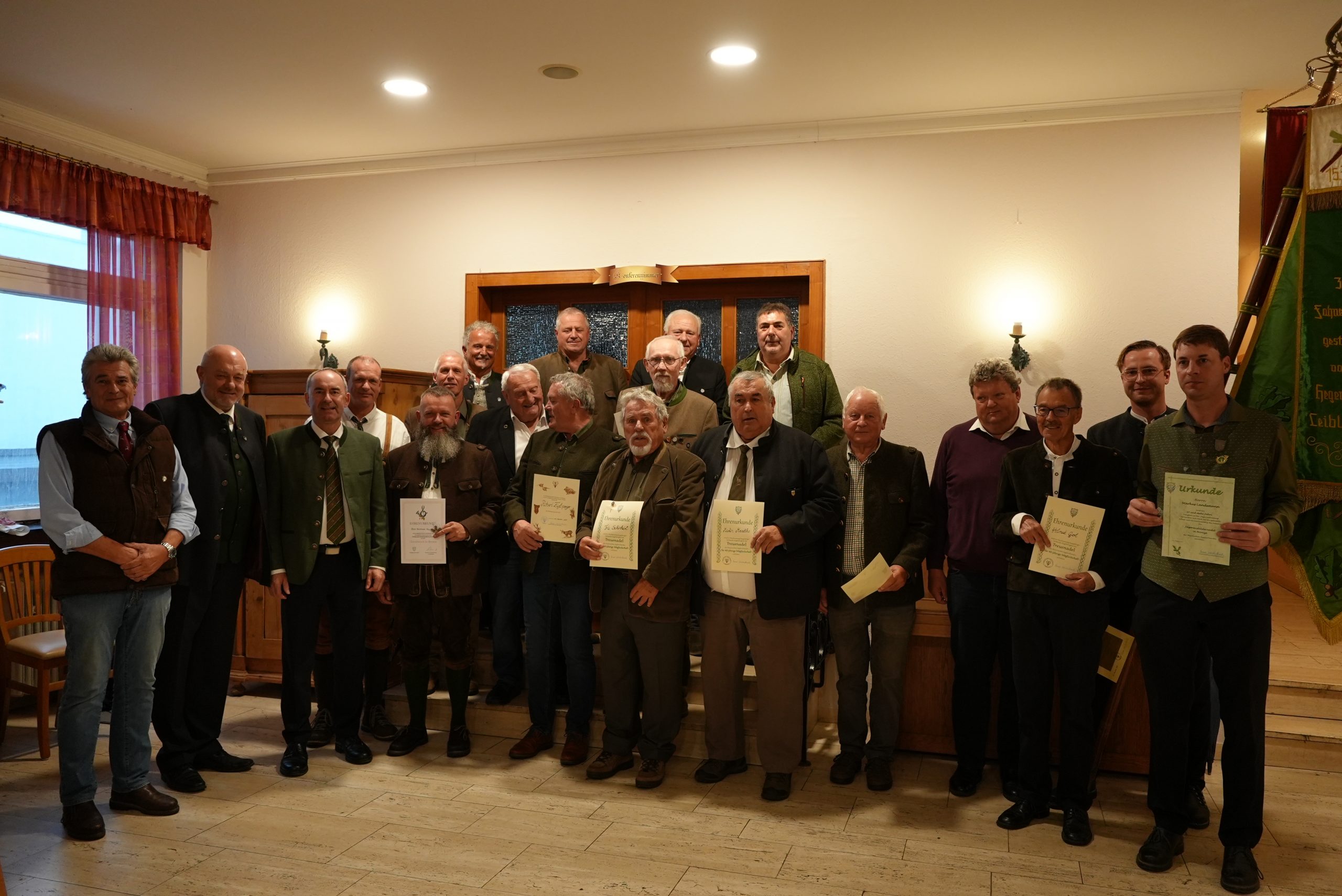 Langjähriges Wissen weiterzugeben ist eine wertvollste Aufgabe im Verband. Für 10 und mehr Jahre Tätigkeit als Ausbilder im Jagdkurs wurden geehrt: